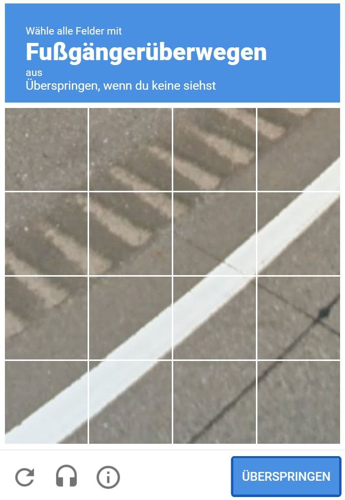 Dies können Tiere, Autos, Fahrräder, Formen oder Szenen sein. In der Regel müssen Nutzerinnen und Nutzer dann die Bilder auswählen, die zum vorgegebenen Thema passen. Können Sie die richtigen Bilder in diesem Beispiel identifizieren?